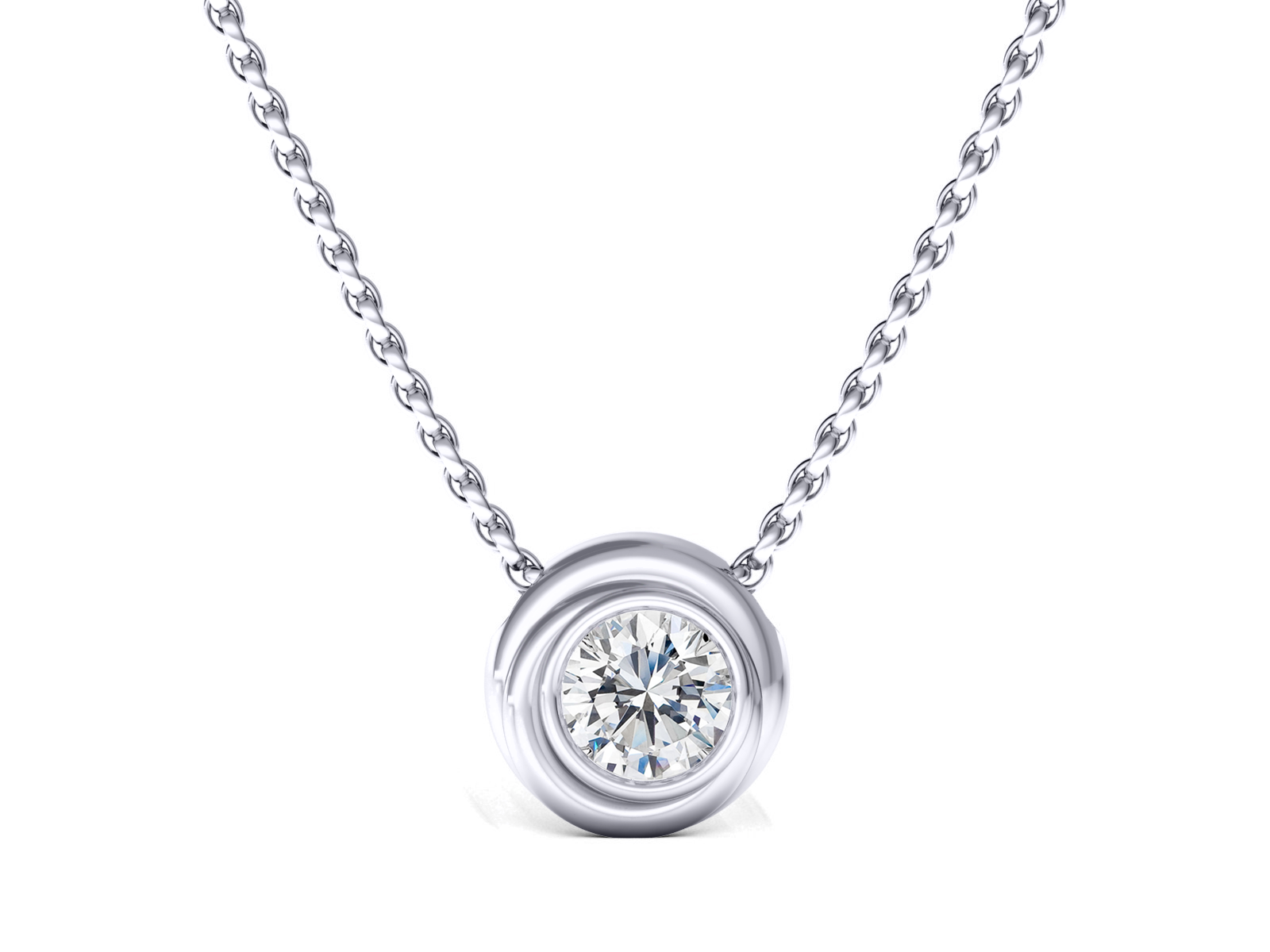 You have selected Swirls Pendant pendant in set with a 0.3 Round Brilliant Cut Diamond. This timeless classic design combines simplicity with elegance.